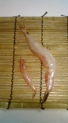 今日、夕飯のメニューを考えつかなくて、冷蔵庫の中を考えてたら桜エビがあったから、桜エビとしらすの釜あげのかき揚げにしようと、さっそく解凍した。そしたら、な・な・なんと、こんな大きな桜エビが見つかり、びっくりです!